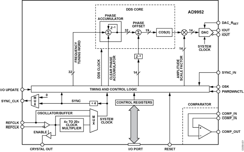AD9952YSVZ是一款直接數字頻率合成器(DDS),具有14位DAC(數字 - 模擬轉換器),工作速率高達400 MSPS。AD9952采用先進的DDS技術,結合內部高速,高性能DAC,構成數字可編程,完整的高頻合成器,能夠產生頻率高達200 MHz的頻率捷變模擬輸出正弦波形。AD9952為了更好地能提供快速的跳頻和細調識別率(32位頻段調諧字)。的頻率調合諧控住字在串行I / O網絡端口讀取到AD9952。AD9952的額定負載本職工作體溫時間范圍之內為-40°C至+ 105°C初始化工業品體溫時間范圍之內。