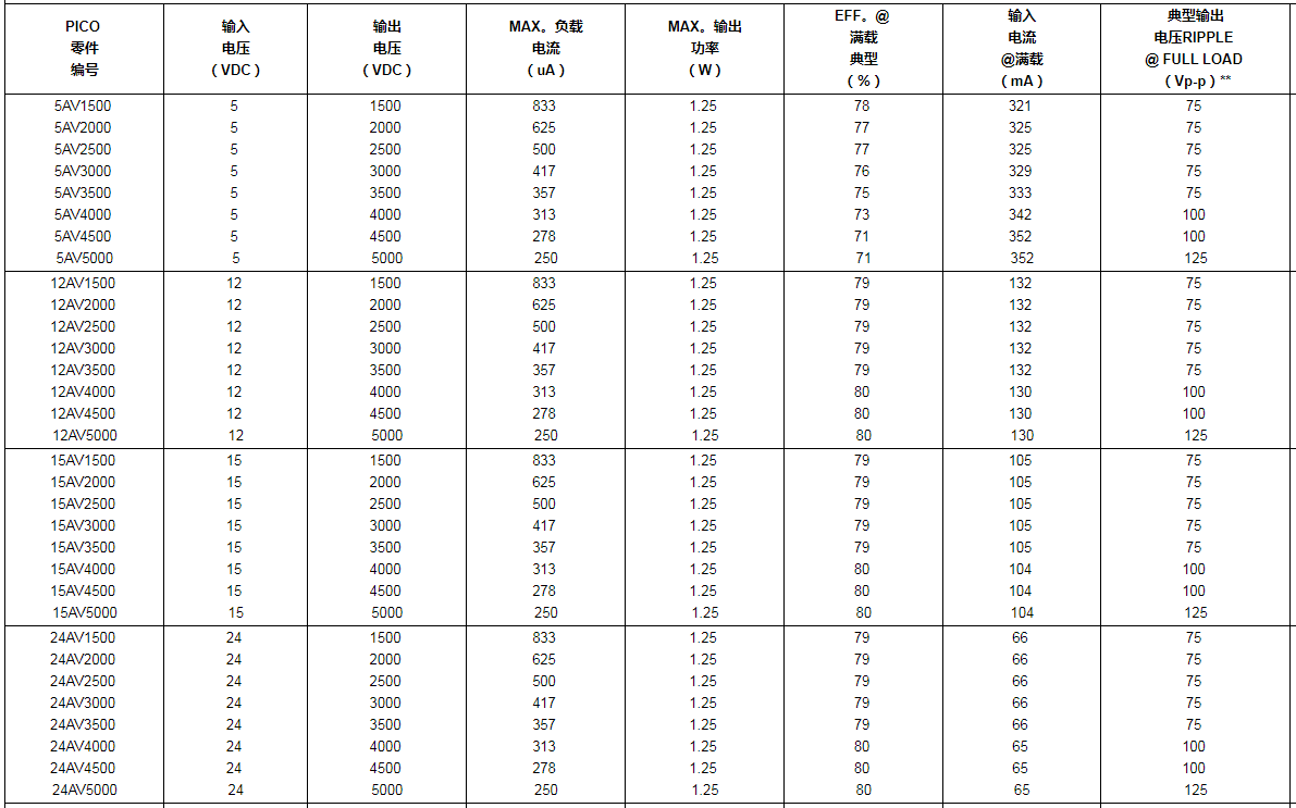 超全自動高電壓DC-DC電源適配器開關板塊1500至5000VDC內容輸出——PICO電源適配器開關板塊