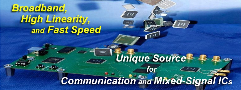 EUVIS公司現今的(de)物(wu)料包含廣(guang)泛用于(yu)WiMAX,3G /蜂窩(wo)基礎設施的(de)高(gao)線性RFIC,高(gao)動態(tai)數據時間范圍可變氣門正時增益值(zhi)線型放(fang)縮(suo)器(qi)(qi)和Gsps寬帶跟蹤保持放(fang)大器(qi)(qi),用于(yu)GHz ADC的(de)前端, 數模(mo)轉換器(qi)(qi)(DAC),直接數字合成器(qi)(qi)(DDS)和多路復(fu)用DAC(MUXDAC)的(de)高(gao)速混合信號(hao)IC,二氧化碳激光二級管驅動下(xia)載(zai)器(qi)(qi)(LDD),跨阻放(fang)大器(qi)(qi)(TIA)和限幅放(fang)大器(qi)(qi)(LIA)的(de)10G模(mo)擬通信IC。