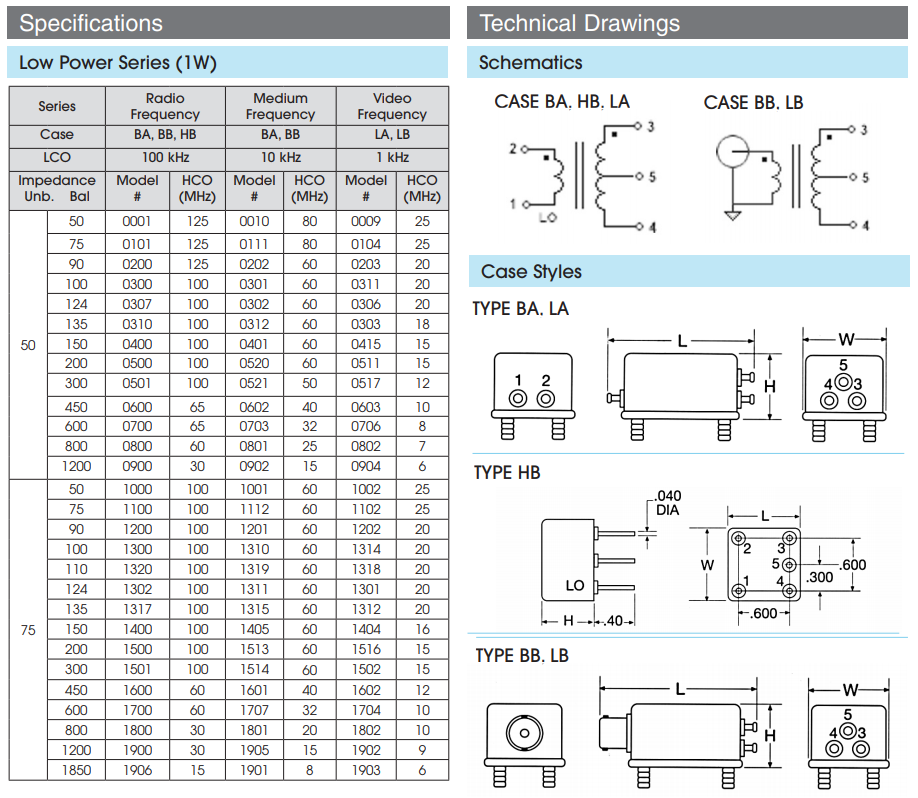0300BB/0301BB/0010BB/0017CC/0700BB/0303LB巴倫低壓變壓器 North Hills